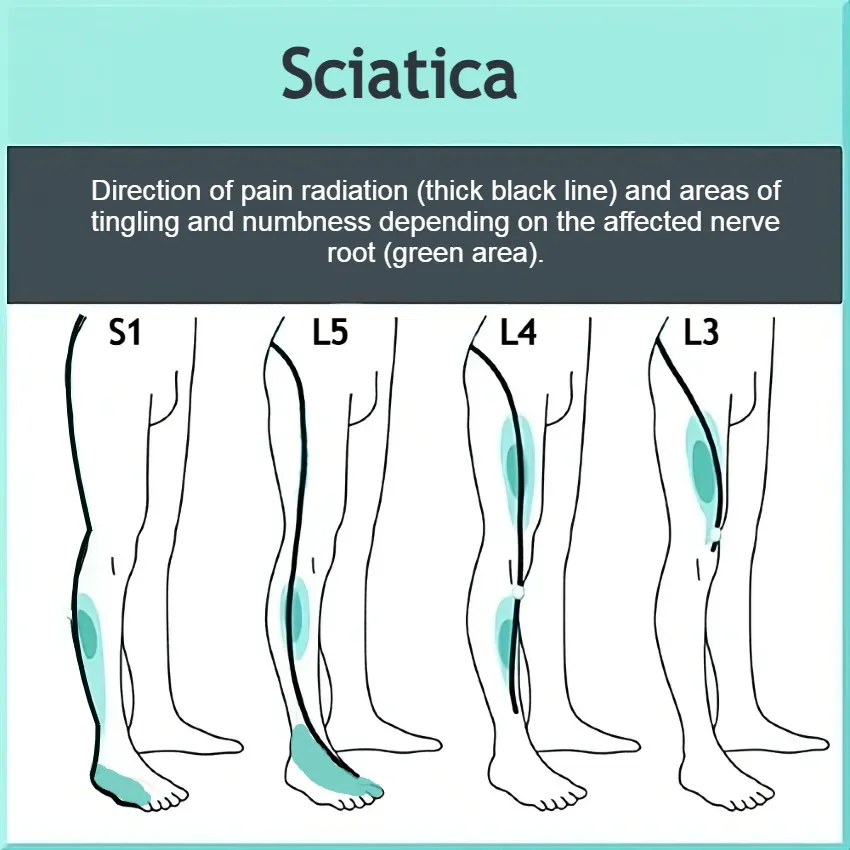 Fairag M, Kurdi R, Alkathiry A, et al. Risk Factors, Prevention, and Primary and Secondary Management of Sciatica: An Updated Overview. Cureus. 2022 Nov 12;14(11):e31405.